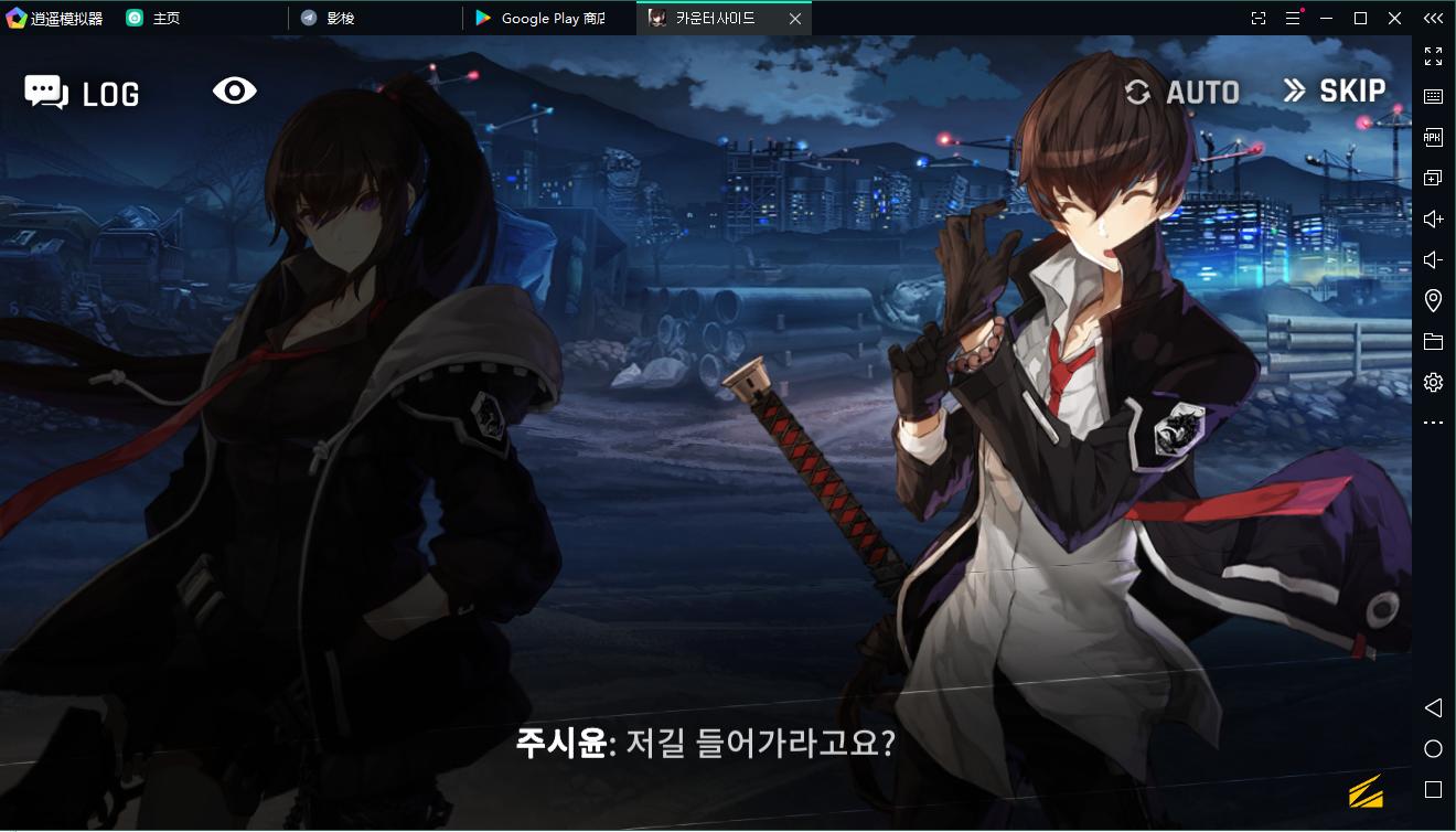 구글 계정으로 로그인 하신 후 미뮤 앱플레이어 바탕화면 검색창에 <카운터사이드> 검색하고 설치하기