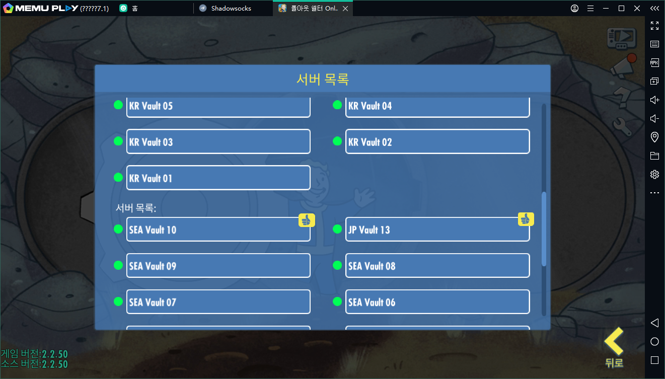 4.등록한 다음에 “서버 변경” 버튼을 통해 원하는 서버를 선택하세요! ( 한국, 일본, 동남아)