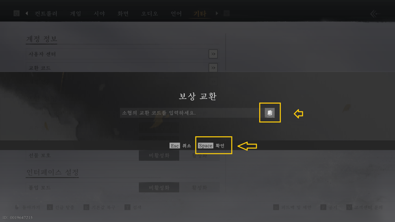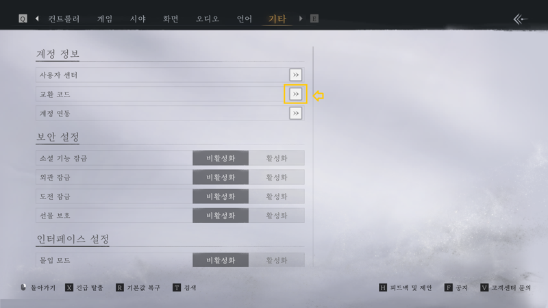 설정 -> 기타 -> 교환 코드